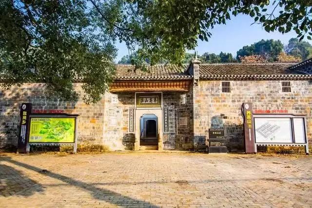 养英山庄(图八):坐落于群山环抱的趾凤山中,背山面溪,避风向阳。山庄以宽阔的厅堂为中轴线,东西两侧的厢房分布均匀,颇具南方古民居风格。青砖黛瓦,飞檐翘角,与周围的古树相映成趣,古风韵味十足,每一砖每一瓦都诉说着过往的历史。