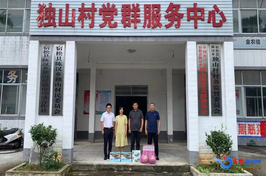宿松融媒讯 近日,宿松县医疗保障局负责同志及工会主席一行前往陈汉乡独山村开展“夏送清凉”活动,为支村两委及驻村干部送上矿泉水、西瓜、饮料等防暑降温物资。