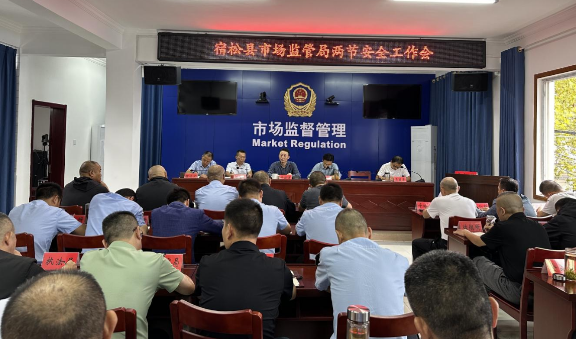 宿松融媒讯 为切实筑牢市场监管领域安全防线,保障人民群众度过平安、祥和的中秋和国庆佳节,9月24日,宿松县市场监管局组织召开“两节”期间安全工作会。会议由局党组书记、局长尹建军主持会议,班子成员、各市场监管所、直属机构、机关各股室及所属事业单位主要负责人参会。