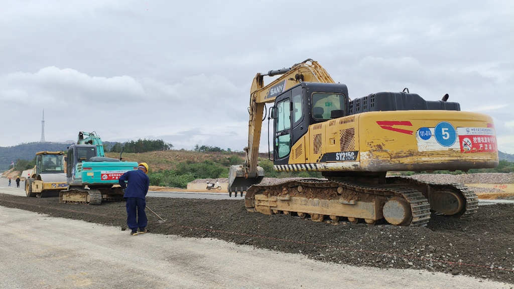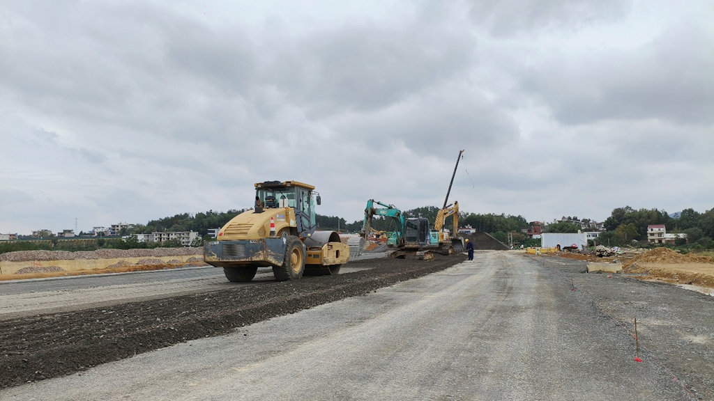 目前,该项目建设进展顺利,整体工程正按计划有序推进。据项目经理国应丰介绍,该路段的土建工程已基本结束,施工重点已全面转向路面工程。近日,施工现场正有序进行路面基层的摊铺作业,各类施工机械与人员配合紧密,全力推进集配及水稳层等结构施工,同时附属结构正在全力推进,路段内的一座关键桥梁,其下部结构也已基本完成,为后续桥面施工奠定了坚实基础。