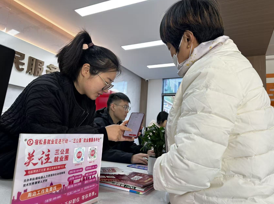 针对农村劳动力、城镇失业人员、宝妈群体等重点群体就业需求,着力破解“就业信息不对称、岗位匹配不精准”等痛点问题。宿松县将就业工作纳入30项民生实事重点推进,通过整合县、乡、村三级就业服务资源,线上升级“三公里”就业圈服务平台、社区快聘小程序等数字化载体,线下在社区设立就业服务站、开通岗位推荐专线,构建起“线上精准匹配+线下贴心服务”的就业服务体系。平台不仅整合了周边企业、商超、餐饮、家政等各类岗位资源,还提供简历优化、岗位推送、面试对接等全流程服务,让求职者“动动手指”就能找到合适工作,让用人单位“足不出户”就能招到所需人才。