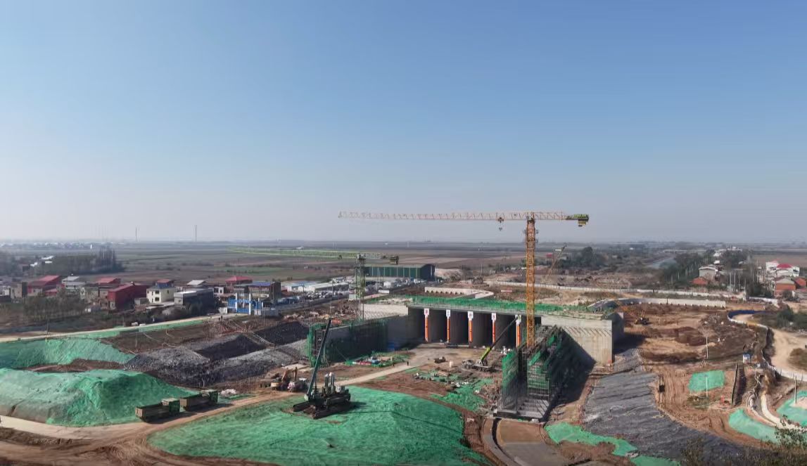 作为国家重大水利工程,华阳河蓄滞洪区建设是宿松县“十四五”水利工作的重中之重。位于复兴镇的杨林退洪闸是该工程关键节点,设计退洪流量达800m³/s,计划2026年建成发挥效益。“目前已完成下游鱼道翼墙主体工程的80%,正加快推进上部启闭机房综合楼施工,同步采用无人机AI巡检技术实时监控进度与安全,全力推动项目提质增效。”安徽建工水利华阳河杨林退洪闸项目现场负责人王喜财介绍,该退洪闸计划2026年汛前完成主体段水下工程,具备防洪度汛条件。