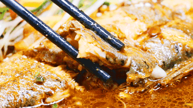 将腌制好的鱼烤至金黄后,配上熬制的浓郁汤料,让鱼肉沐浴在浓汤中,加入传统的川菜调料猛火烹饪,这样做烤鱼很独到!