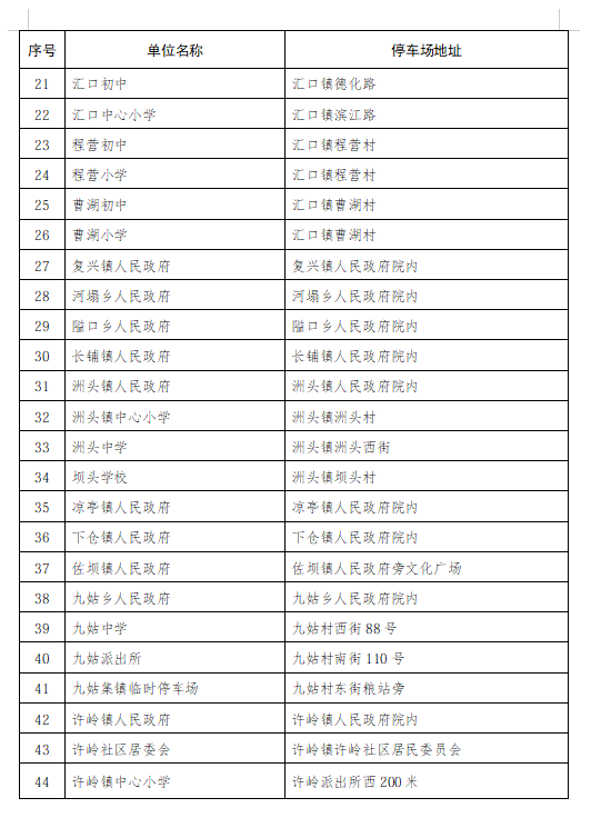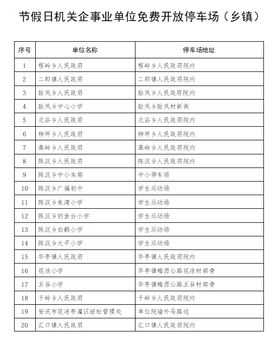 2.节假日机关企事业单位免费开放停车场(乡镇)