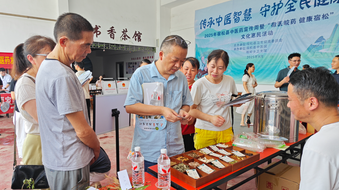 宿松融媒讯 9月12日下午,由县中医院组织的中医药宣传周暨"徽医皖药 健康宿松"文化惠民活动走进程岭乡。活动以集市形式展开,融合中医药诊疗、养生体验与文化展示于一体,吸引近百名群众积极参与。 现场设有名中医义诊、特色疗法体验、养生科普、中药香囊制...... 【详情】