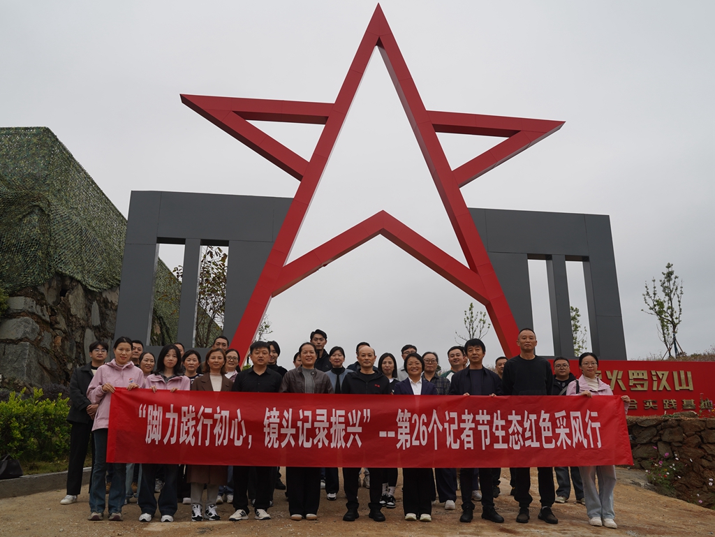 活动中,融媒体中心全体职工首先来到罗汉尖革命根据地纪念馆开展红色教育。在纪念馆前,全体人员整齐列队,认真聆听讲解,系统回顾罗汉尖地区那段波澜壮阔的革命历史与英勇无畏的斗争事迹。通过实地参观纪念馆,大家深刻感悟到革命先辈坚定的理想信念和不怕牺牲的崇高精神。记者丁云鹏说道:“这次活动让我深受触动。先烈们的革命精神,不仅震撼了我的心灵,更为我树立了崇高的职业标杆。未来,我将更加自觉地沉下心、俯下身,在实践中不断增强‘四力’,努力创作出更多鲜活、立体、真实的新闻作品。”