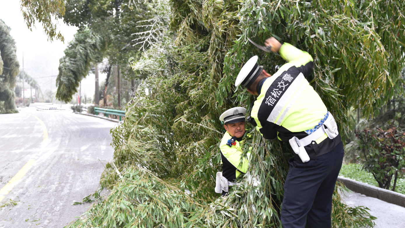 宿松融媒讯 2月22日,受寒潮天气影响,宿松县墨两公路山区部分路段结冰,公路边的竹子、树木倒伏在公路上,安全隐患突出。县公安局交警大队三中队迅速采取管理措施,强化路面管控、排除路障,守护行车安全。 在亭子岭路段,该中队安排警力对过往车辆进行安全...... 【详情】