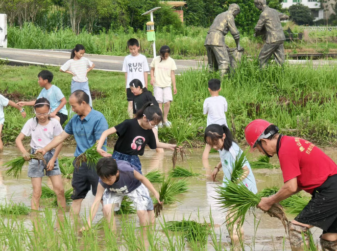 可别以为这只是单向的知识输送!随着一拨拨“小游客”涌来,二郎镇的乡村振兴之路简直像开了挂。这几年,在宿松县委统战部的牵线搭桥下,乡贤们纷纷掏出“金点子”,帮着村里玩转“研学+”新花样。镇里憋了个大招——“问稻”课程横空出世!从水稻的老祖宗讲到现代农具变形记,从生长周期聊到品种冷知识,整套课程就像农业版的“十万个为什么”。孩子们在这儿既是学生,又是小小农民,播种、插秧、收割全程参与,尝到了“汗滴禾下土”的滋味,也品出了劳动的甘甜。