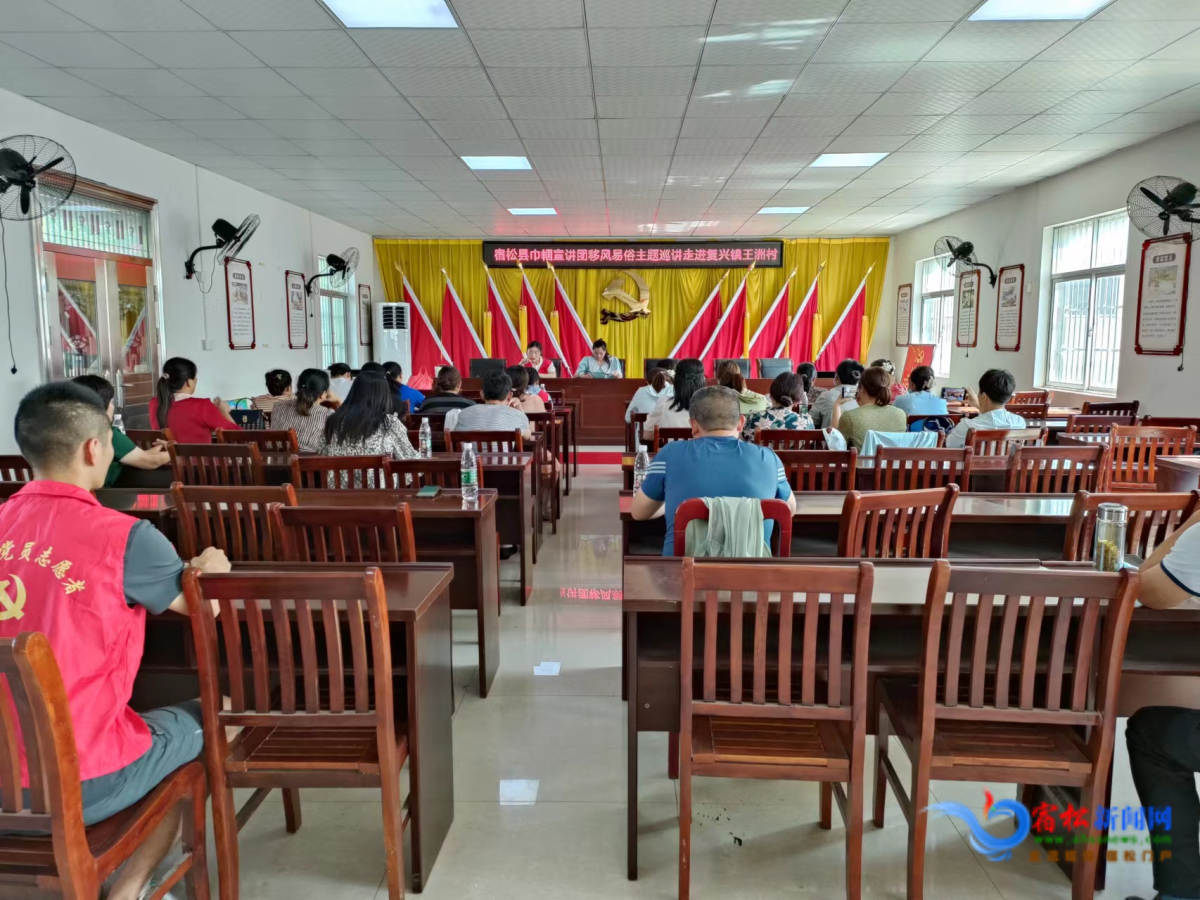 宿松融媒讯 6月8日下午,宿松县巾帼宣讲团移风易俗巡讲在复兴镇王洲村开讲,各村(社区)妇联执委、王洲村村民40余人参加。 活动中,宿松县巾帼宣讲团成员洪利君紧扣县委县政府移风易俗的工作要求,结合妇联工作的特点,用通俗易懂的语言、生动鲜活的案例...... 【详情】
