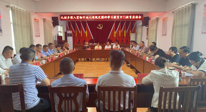 宿松融媒讯 6月9日,九姑乡召开深入贯彻中央八项规定精神学习教育开门教育座谈会,乡领导班子成员、部分两代表一委员、群众、企业代表参加会议。