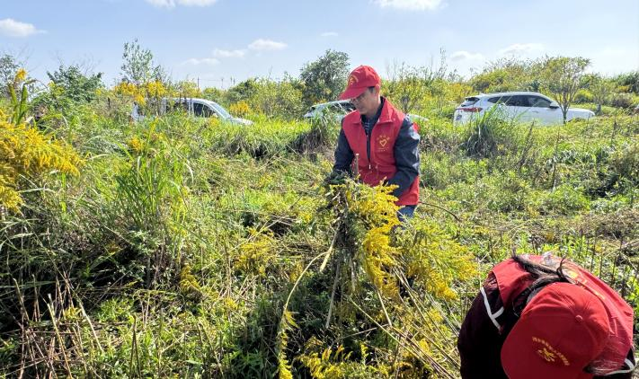 田间地头间,身着马甲的志愿者们手持镰刀、铁锹,循着“先砍枝叶、再连根拔除、最后集中销毁”的科学流程忙碌着。对零星分布的植株采取人工精准清除,对连片生长的区域则动用机械耕翻,部分地块后续还将进行复耕复种,从根源上切断传播链条。清除过程中,农技工作人员还顺势向过往村民普及识别方法与防控知识,引导群众主动参与“随手清”,形成共治合力。