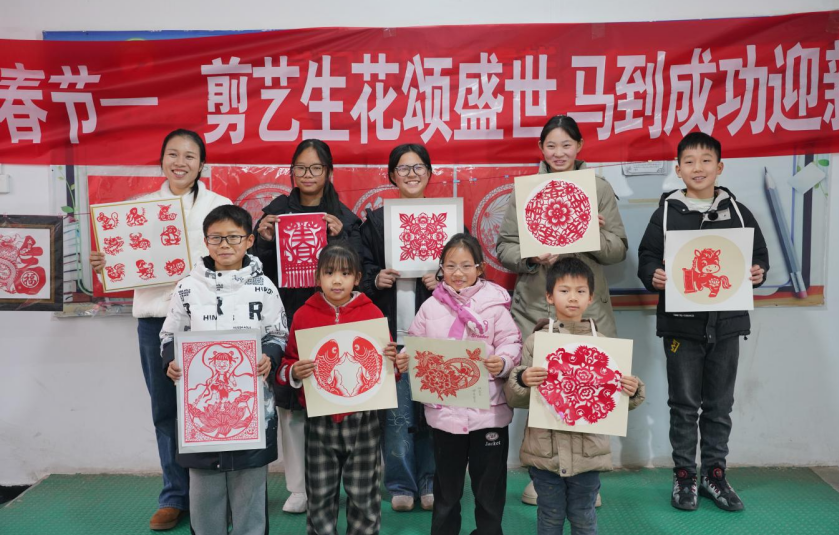 一把剪刀,一张红纸,在指尖翻转间焕发生机。形态矫健的骏马、灵动喜庆的锦鲤、寓意美满的福字窗花陆续成型,件件作品栩栩如生、年味十足。孩子们在动手实践中感受非遗乐趣,在创意创作中寄托对新年的美好期盼,现场欢声笑语不断,处处洋溢着温馨祥和的节日氛围。