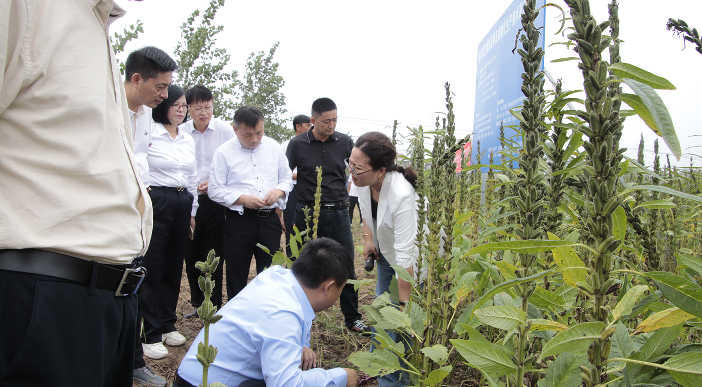 首先,与会代表来到位于复兴镇中棚村的黑芝麻新品种筛选鉴定试验田进行实地观摩。技术人员现场介绍了各品种在抗病性、抗旱性、含油量、亩产量等关键指标上的表现差异。其中,皖芝系列新品种表现出色,植株健壮、结蒴密集,引起了参会人员的浓厚兴趣。大家驻足田间,仔细观察比较不同品种的特征和特性,并就品种选择、栽培要点等与技术专家进行了深入交流。