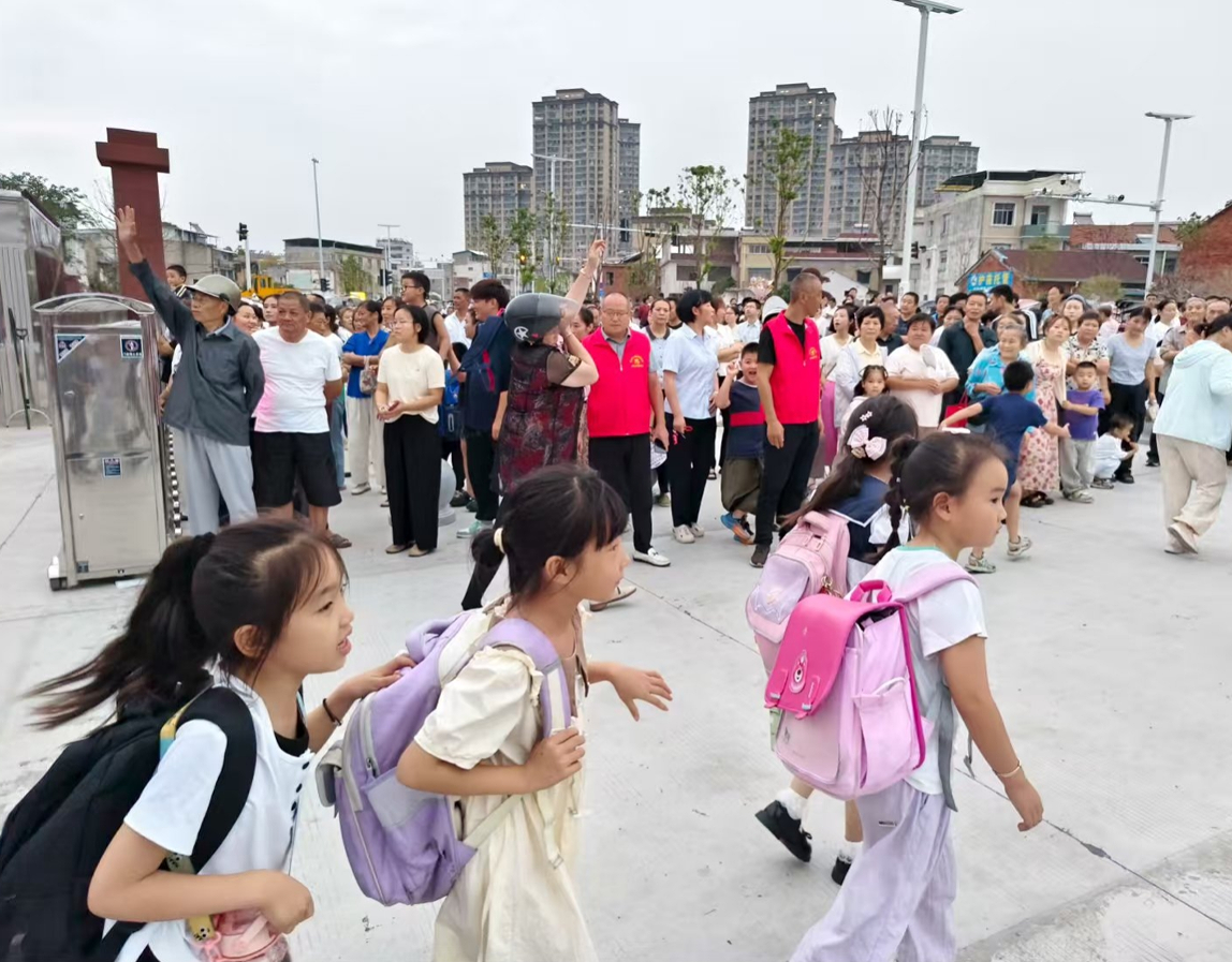 该校东大门紧邻主干道通德街,早晚高峰时段人车混行,存在安全隐患。学校与交警中队合作,科学设置“护学三角区”,划分停车带、等候区与通行廊道,实现“人车分流、即停即走”。党员教师志愿者主动充当“移动警示牌”,让交通管理更具温度。